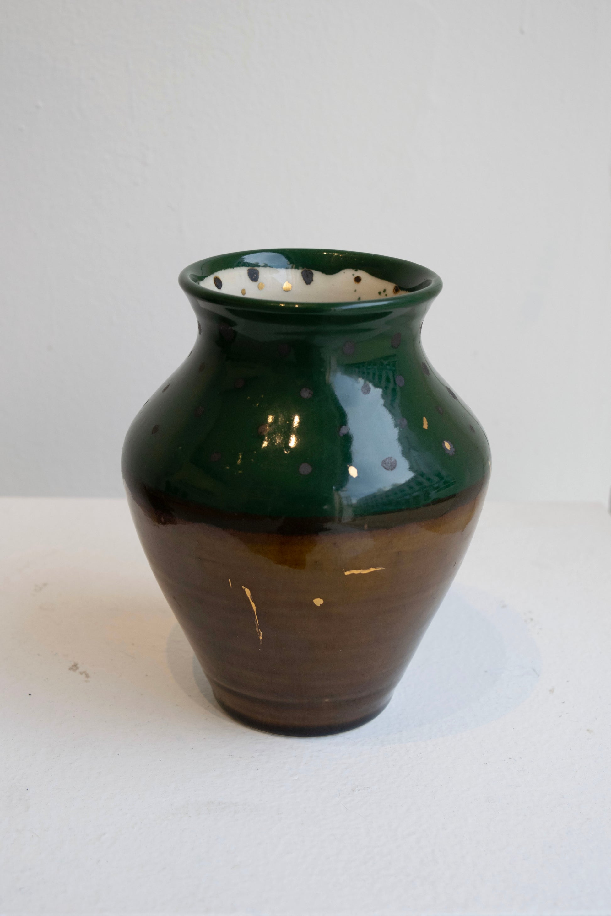-Materials/technique: Wheel thrown, porcelain, fully glazed, gold luster.
